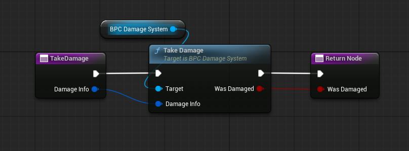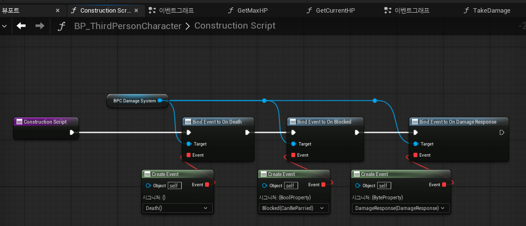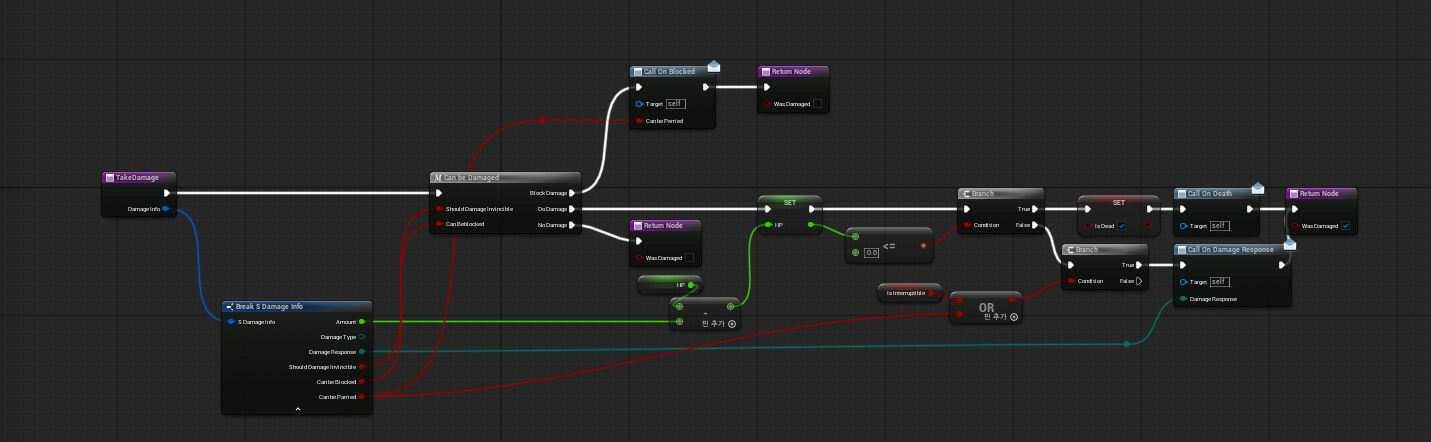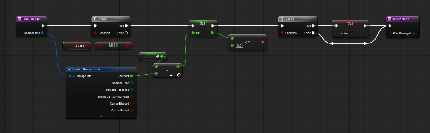 함수를 완성 시키고 다시 플레이어 블루프린터에 Take Damage 함수로 가서 연결 시켜줍니다.