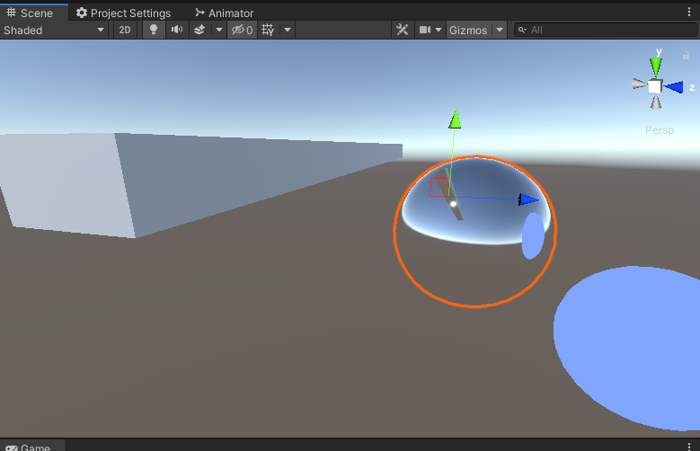 - 구체(메뉴: GameObject > 3D Object > Sphere)와 같은 프리미티브 오브젝트를 씬에 추가합니다.